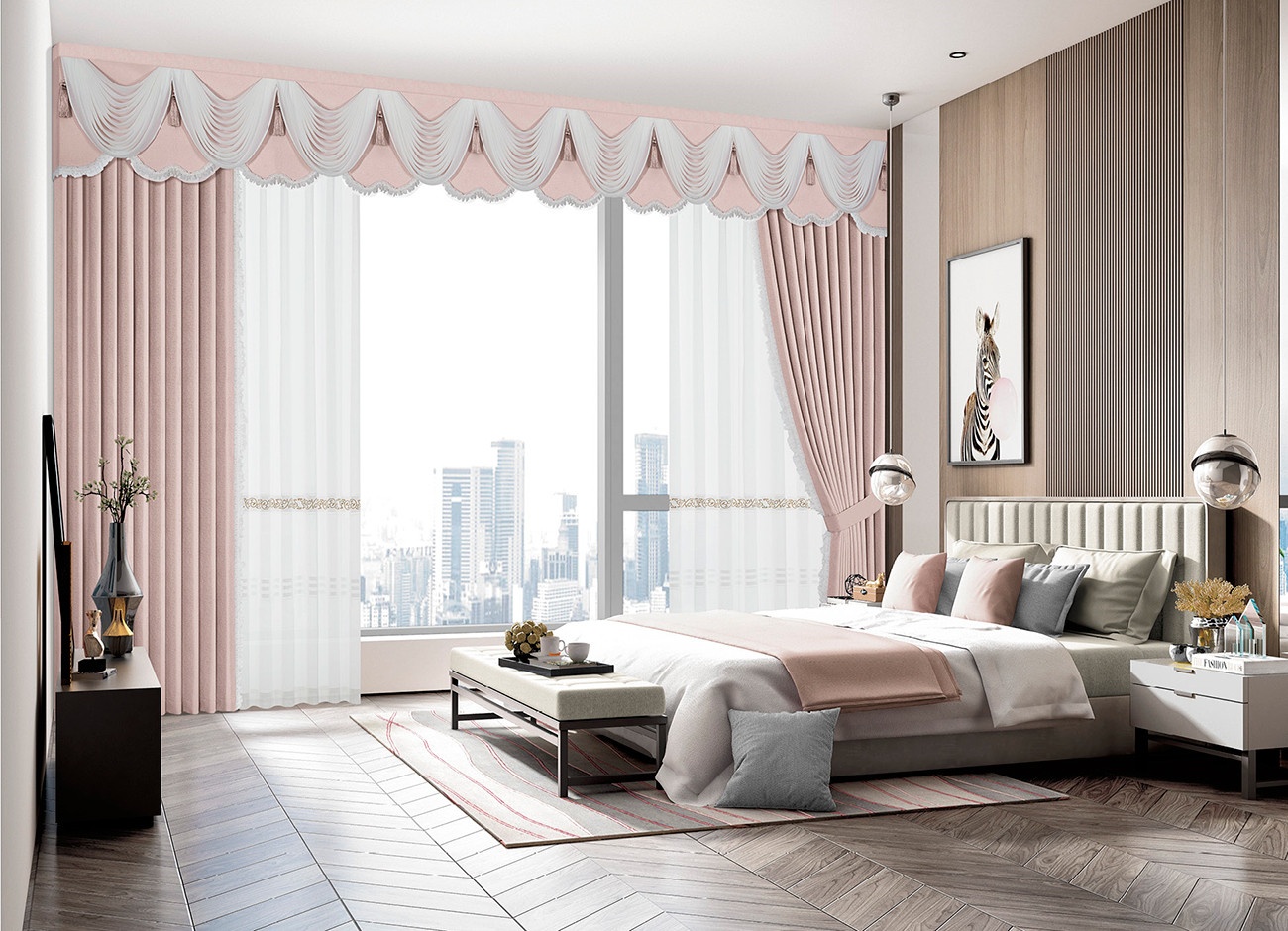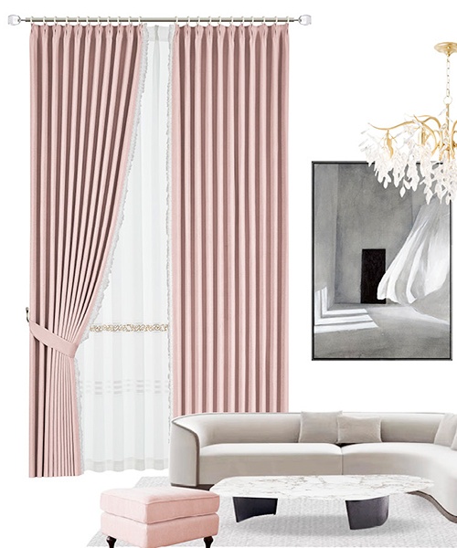 層疊的水波紗與嬌嫩櫻花粉仿佛初入宮廷的少女裙擺,生機與優雅同行,讓空間也明媚起來